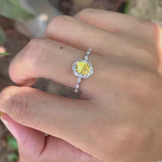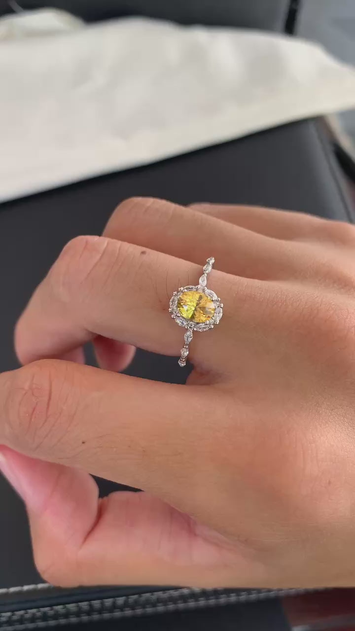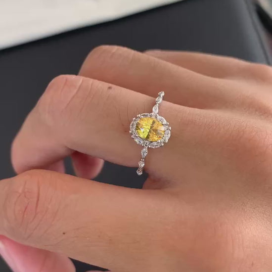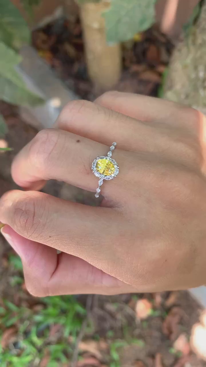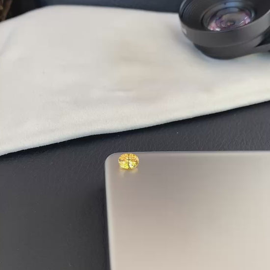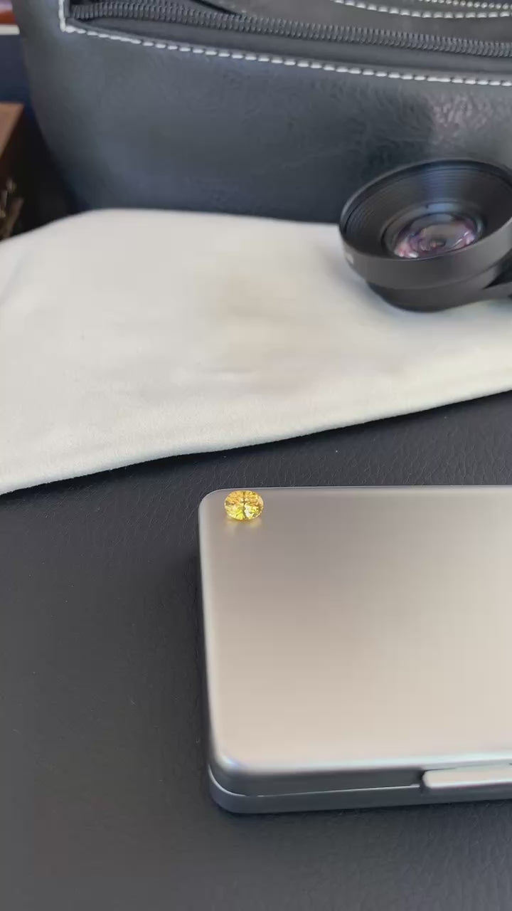1.1カラットのイエロー・サファイア(加熱処理)です。高い透明度でクラックもなく、非常にクリーンな内部を保っています。