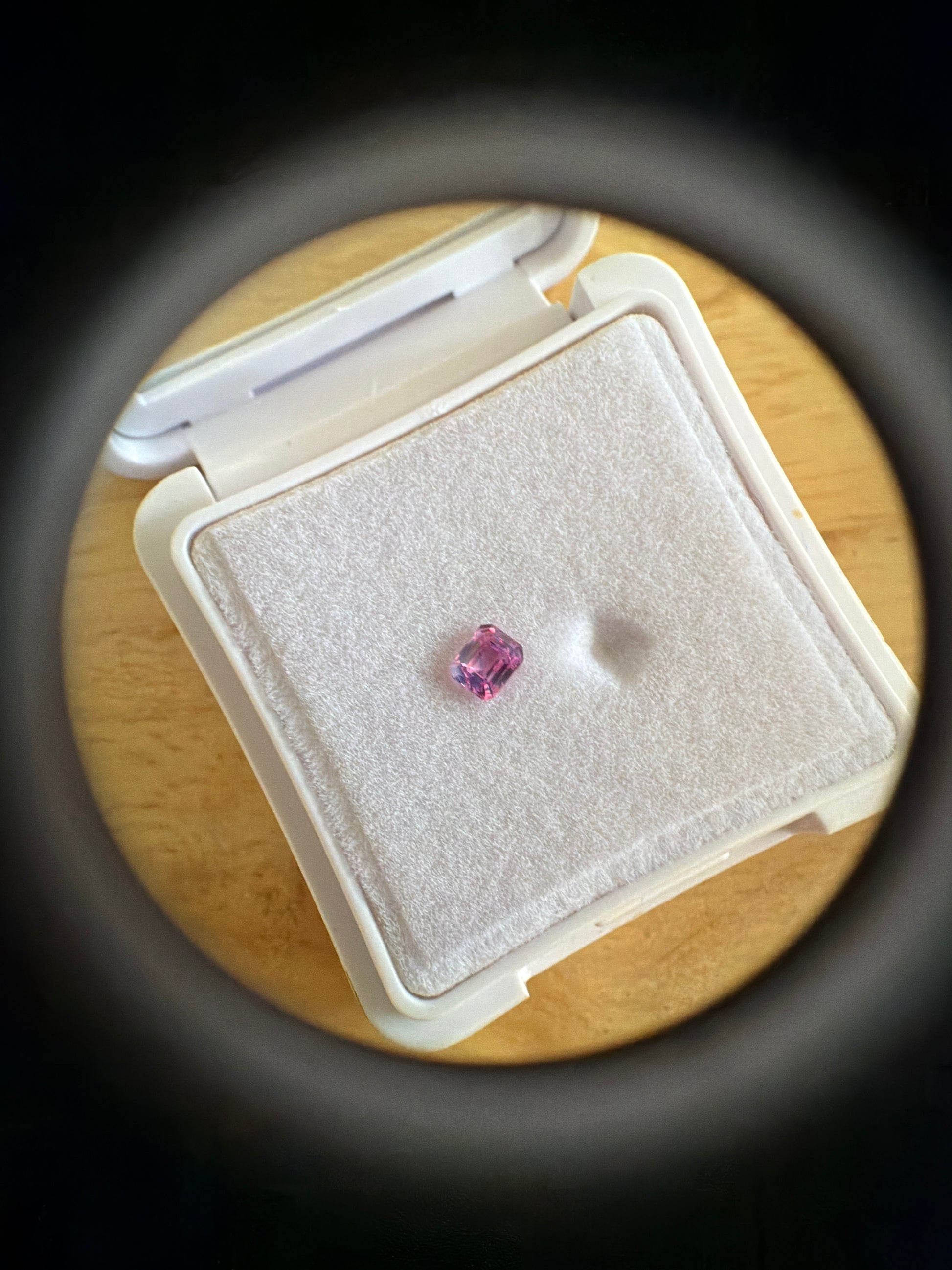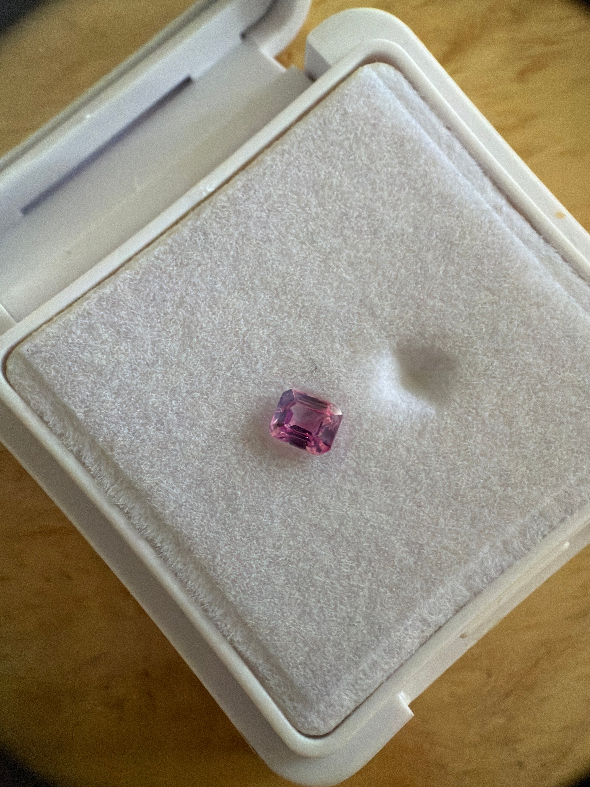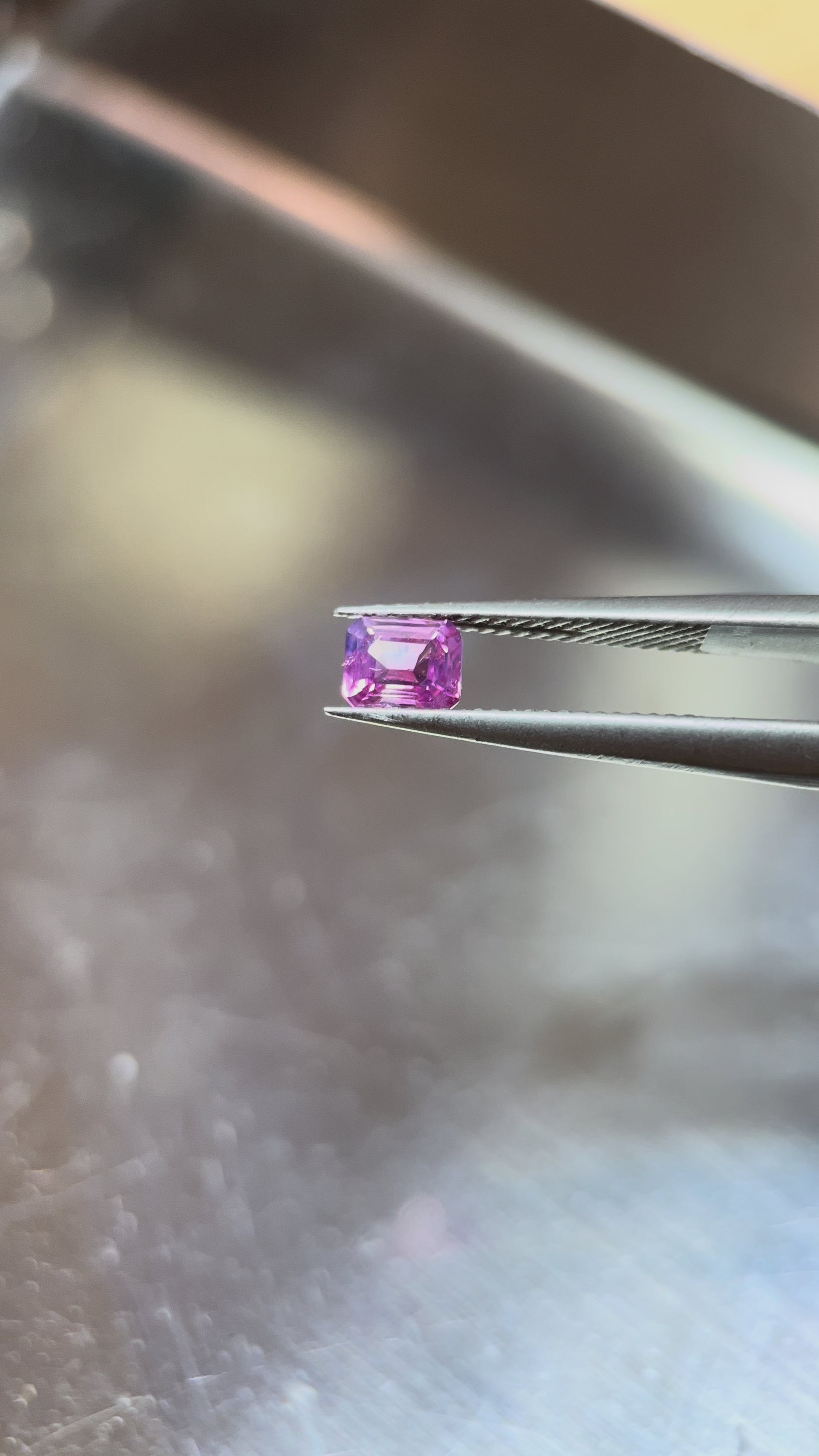 ベトナム産のピンク・パープルサファイアです。重量は0.45カラットで、内部は非常にクリーンでクラックはございません。ピンク色を基調とし、ほのかな紫がかった色合いが特徴です。