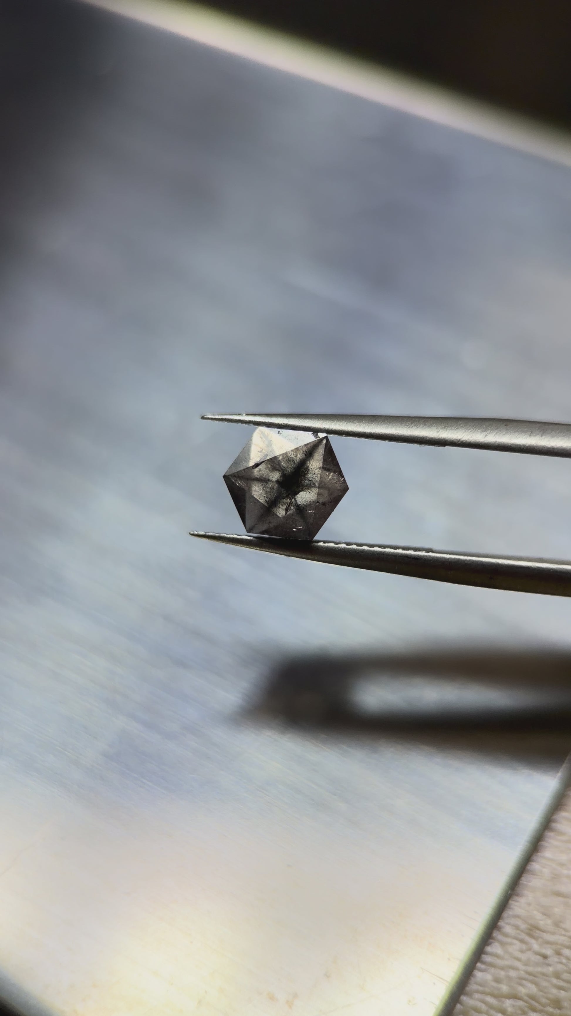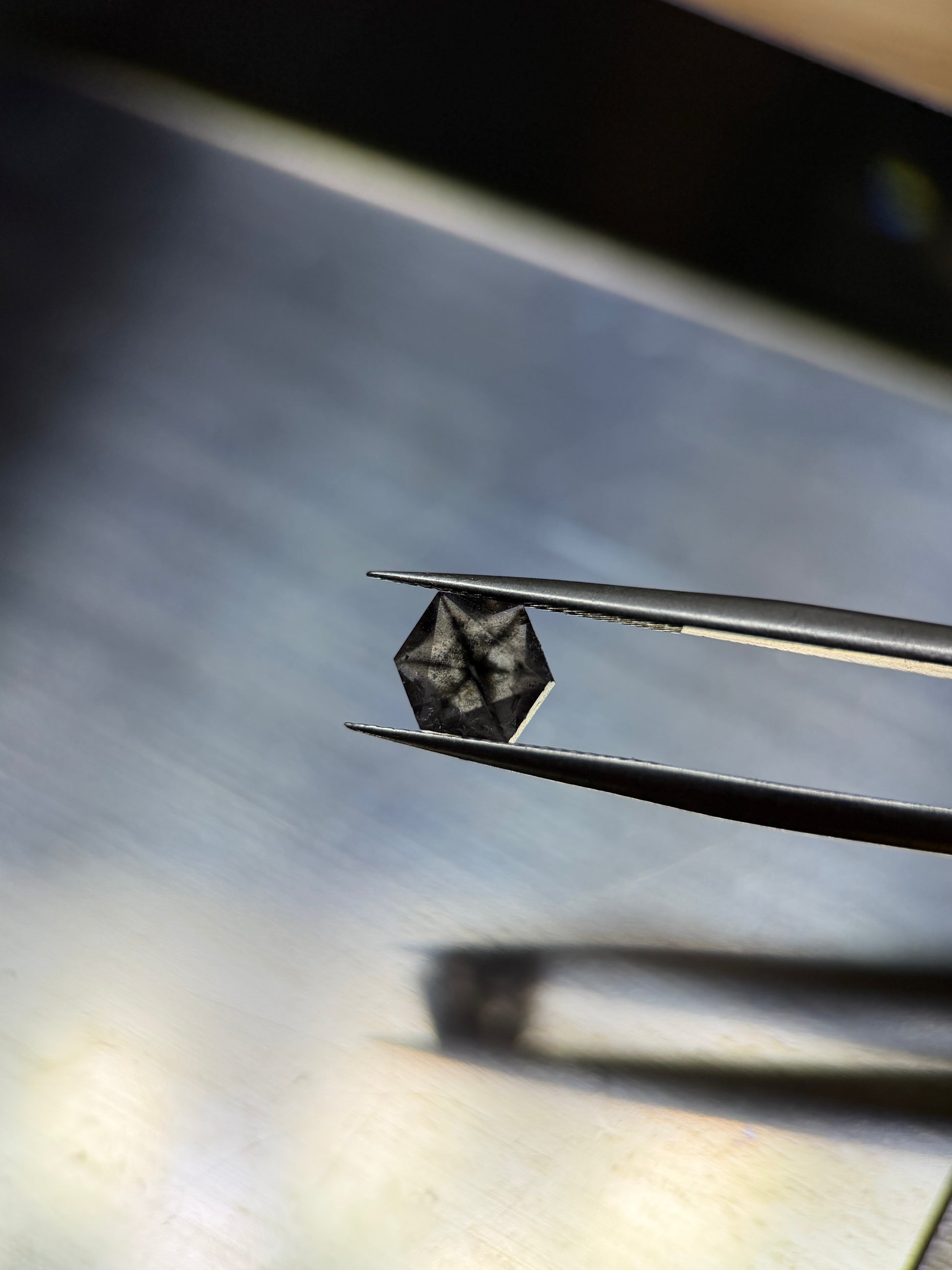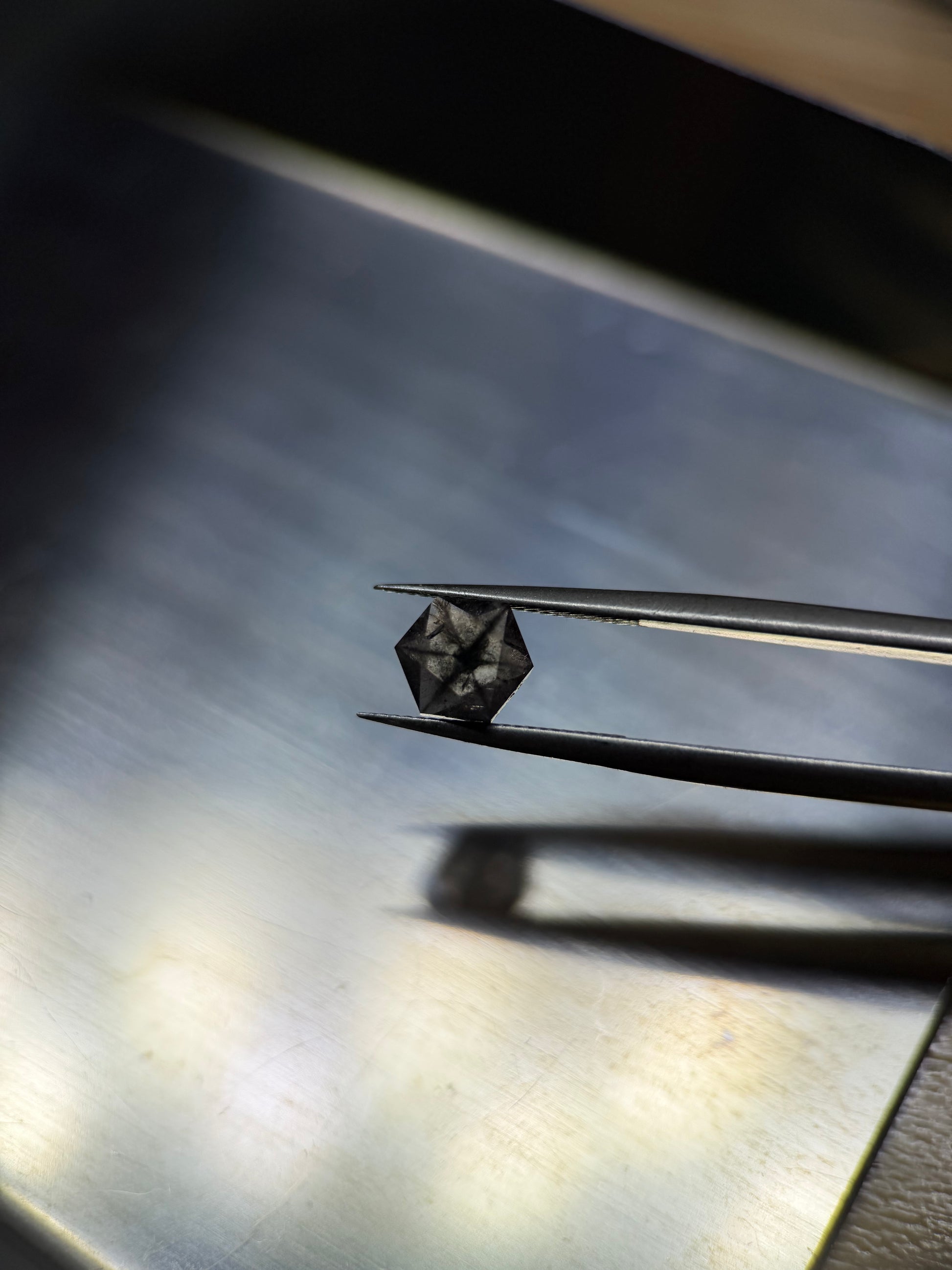 No.1 ガーネット、重量:1.58カラット、サイズ:7.3x5.9mm。このガーネットにひび割れはありませんが、2か所の内包物が表面に露出しています。