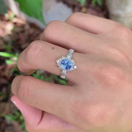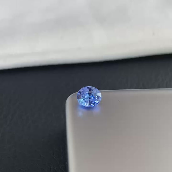 こちらは1.5カラットのサファイア(伝統的加熱)です。コーンフラワー・ブルーを思わせるその色合いは、息をのむほどに透き通り、クラックのない完璧な結晶です。